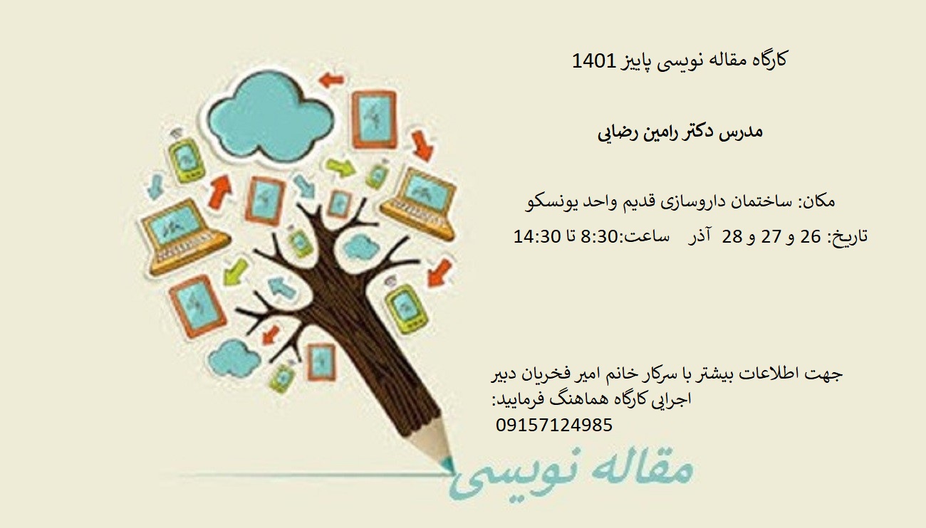 مسئول سایت کارگاه های آموزشی 22 آذر 1401 بازدید: 80 امتیاز: ( 0 Rating ) کارگاه مقاله نویسی پاییز 1401 امتیاز کاربران